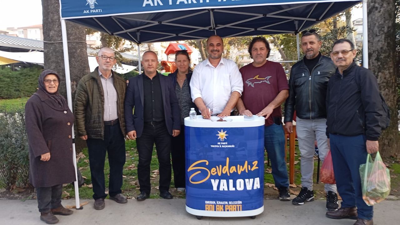 AK Parti Merkez İlçe Teşkilat Başkan Yardımcısı Murat Asma, Yalova Merkez Mahallelerinden; Süleymanbey Mahallesi Teşkilat Başkanı Fatih Güçlü ile İsmetpaşa Mahallesi Teşkilat Başkanı İsmail Yençırak, Cengiz Koçal Caddesi, Kapalı Pazar yanında üye çalışmaları için satand açtı.