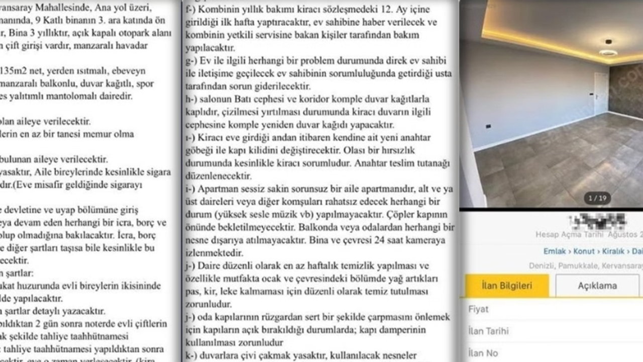 Denizli’nin Pamukkale ilçesinde 3+1 dairesini aylık 35 bin TL kira bedeliyle kiraya vermek isteyen bir ev sahibinin ilanına eklediği kapsamlı talep ve kurallar, sosyal medyada büyük yankı uyandırdı.